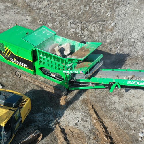 Engineered rugged and tough from the inside out, Badger shredders reduce larger abrasive materials than any crusher in its class with more efficiency and throughput. Designed with exclusive reconfigurable shaft blades, the Badger provides versatility that no other crusher can match. Its high-torque, low-speed shaft design can be configured to shred whatever your job demands. And, it shreds with less noise pollution and dust than ever before.